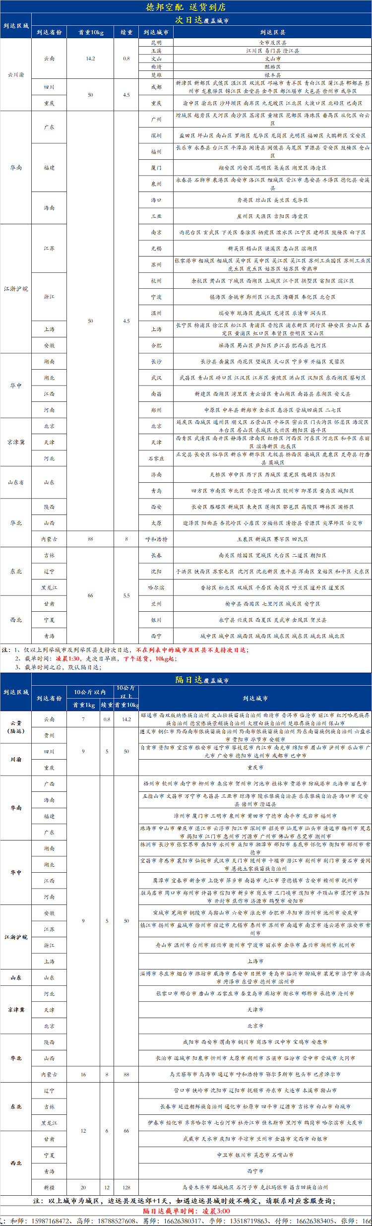 附:昆明斗南德邦空配区域价格(首重10kg!)